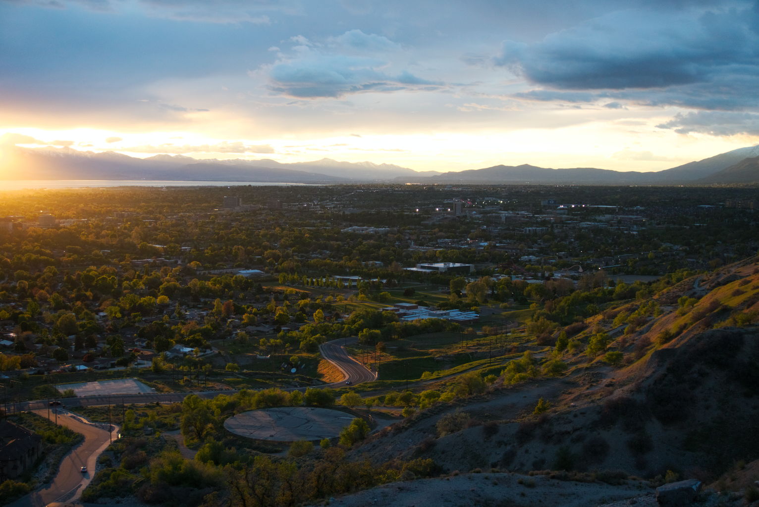 The way the light streamed across town was mesmerizing to me. Also the way it lit the mountainsides in this soft orange glow.